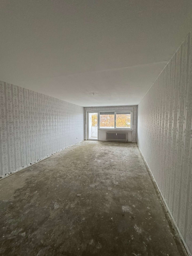 Der Balkon ist vom Wohnzimmer aus zu erreichen. Es ist kein Bodenbelag vorhanden.